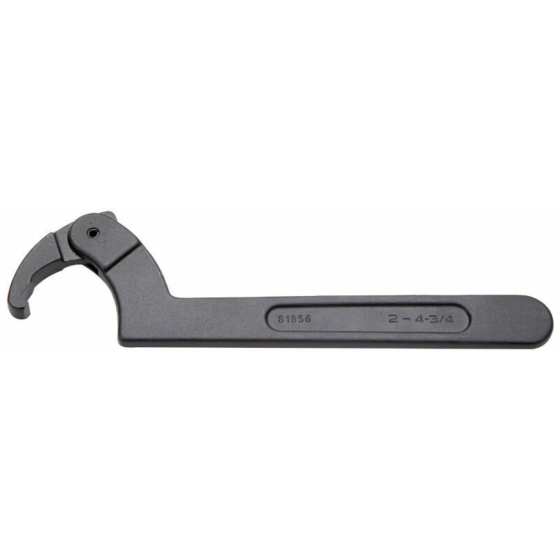 Chiave a gancio mobile a testa quadrata regolabile tipo C a mezzaluna da 19-50 mm La portata regolabile consente alla chiave di adattarsi a collari di diverse dimensioni Forgiata in acciaio legato resistente e resistente La superficie in ossido nero migliora resistenza alla corrosione Marcature delle dimensioni stampate sul manico per una rapida identificazione