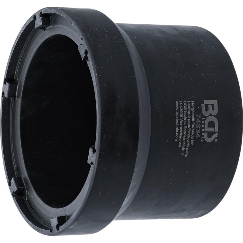 Per l'allentamento e il serraggio dei controdadi del differenziale dell'asse posteriore dei veicoli commerciali MAN e Mercedes-Benz Adatto per lavorare con avvitatrici manuali o a percussione Concepito per coppie di serraggio e di distacco elevate Larghezza dei denti: 8,7 mm Larghezza tra le piastre 120 mm Diametro interno 101 mm Profilo di uscita Spezialprofil Dimensione del profilo di uscita 126 | 113 mm Profilo di azionamento Azionamento quadrato Numero di pin 6 Stück Dimensione profilo di azionamento, metrico 20 mm Peso del tessuto 4.11 Dimensione del profilo di azionamento, imperiale 3/4 Dimensioni dell'imballaggio 1 Diametro esterno 133 mm Peso lordo 4110 g
