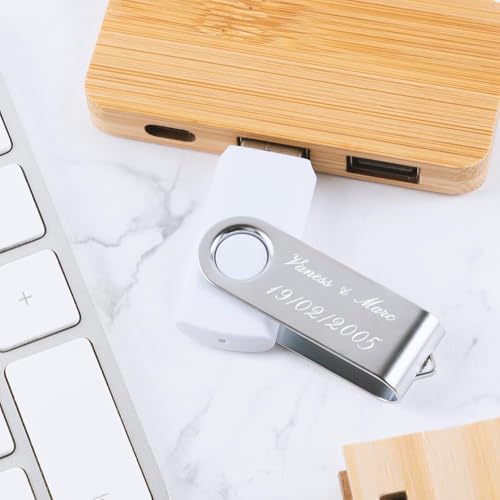 PERSONALIZZAZIONE DI QUALITÀ - Fare clic sul pulsante "Personalizza ora" e aggiungere il testo da incidere. Potrete scegliere il carattere del testo da incidere e adattare così la vostra personalizzazione a questa originale chiave USB bianca. L'incisione laser è realizzata con le nostre macchine professionali per una resa pulita e precisa che farà il suo effetto su questa classica chiave USB twister da personalizzare