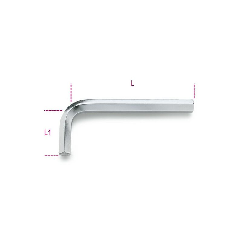 Chiave Maschio Esagonale Piegata Cromata (Brugola) - Beta 96 Chiave maschio esagonale piegata cromata (Brugola) - Beta 96 • Estremità smussate e piane per un accoppiamento ottimale con la vite. Art. mm L L1 96 4 4 72 28