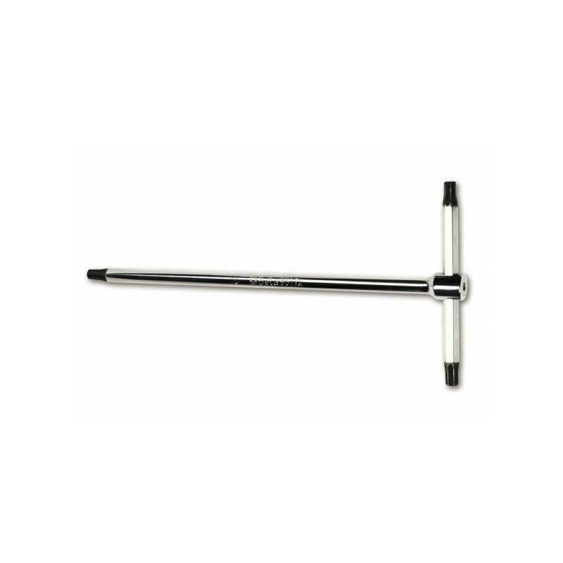 Descrizione Chiave a T esagonale maschio TX25 con tre estremita' maschio. Per viti con impronta Torx. Concepita per sviluppare coppie elevate. Estremità esagonali calibrate, per un perfetto accoppiamento con la vite. L'astina esagonale puo' essere arrestata nella posizione desiderata su tutta la lunghezza;