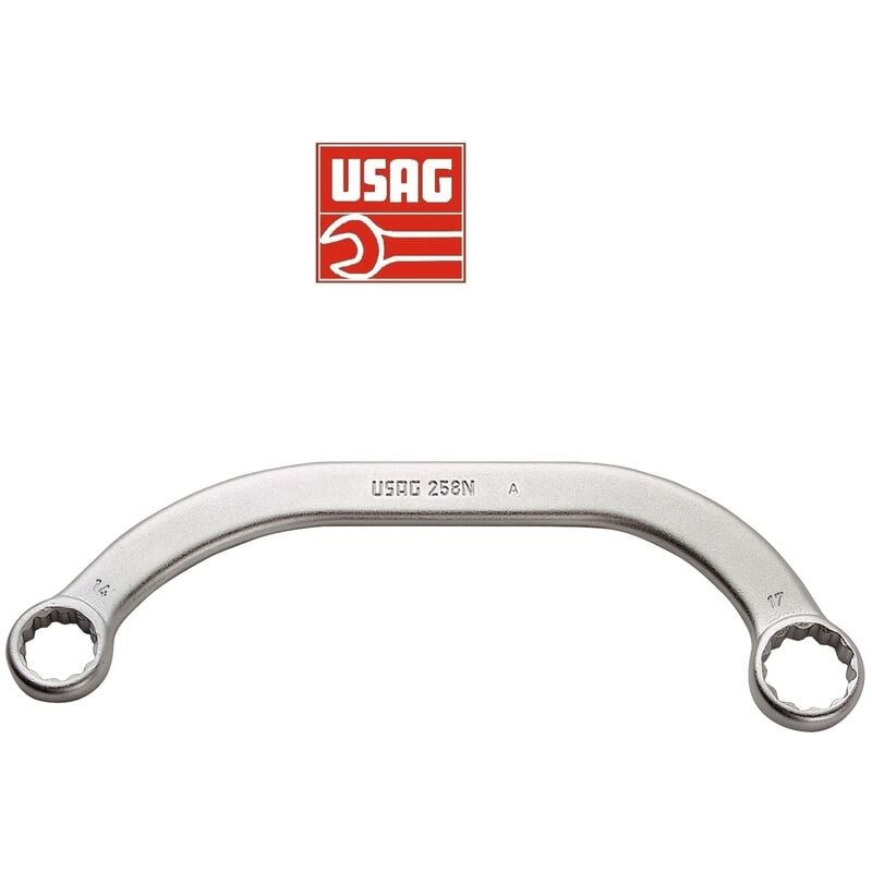 CHIAVE POLIGONALE DOPPIA CURVA CURVATA USAG 258N CHIAVI POLIGONALI DOPPIE CURVE Caratteristiche Per dadi poco accessibili: motorini d'avviamento, collettori ed altri organi ausiliari Dettagli famiglia Dettagli famiglia Codice bocca poligonale mm D mm L mm 258300 10x12 54,1 143 258301 11x13 66,6 165 258302 14x17 79,2 190 258303 15x17 81,3 220 258304 16x18 81,3 220 258305 19x22 94,3 253 QUALITA' PROFESSIONALE USAG