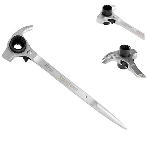Chiave per ponteggi 4 in 1 (19/22) - Martello + Estrattore di chiodi + Punzone conico e Cricchetto Reversibile - Chiave a bussola per ponteggi a 12 punti - Acciaio al cromo vanadio (Cr-V) con 72 denti