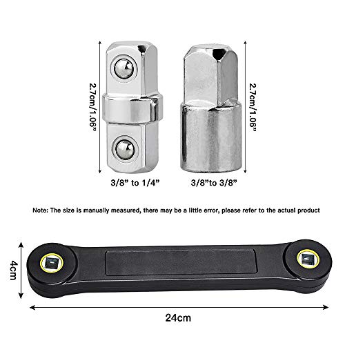 COME LAVORARE: Ingranaggi e catene incorporati per azionare la chiave di prolunga. E Swing Arc di 0 gradi per un facile accesso ai dispositivi di fissaggio in spazi ristretti e ristretti. Un lato funziona con presa da 3/8 '' per afferrare dadi e viti, quindi attaccare alla chiave a cricchetto o al cacciavite sull'altro lato per allentare o serrare i dadi.