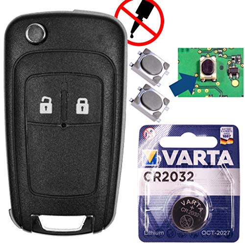 Chiave a scatto con telecomando a 2 tasti, alloggiamento + micro pulsante + vergine + batteria compatibile con Opel