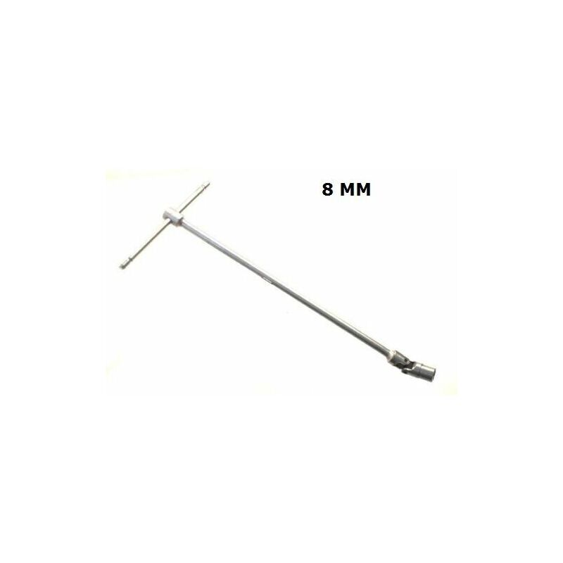 CHIAVE A T DA 8 mm CON BUSSOLA SNODABILE ED INTERNO A PROFILO ESAGONALE. REALIZZATO INTERAMENTE IN ACCIAIO CHROME VANADIUM. OGNI CHIAVE E' DOTATA DI MANICO A T SCORREVOLE, TERMINALE PER L'AGGANCIO DEL BULLONE SNODABILE CON CONFORMAZIONE INTERNA ESAGONALE PER UN AGGANCIO SEMPRE PERFETTO ANCHE IN CASO DI BULLONE CON TESTA ROVINATA. MISURE: 8 mm