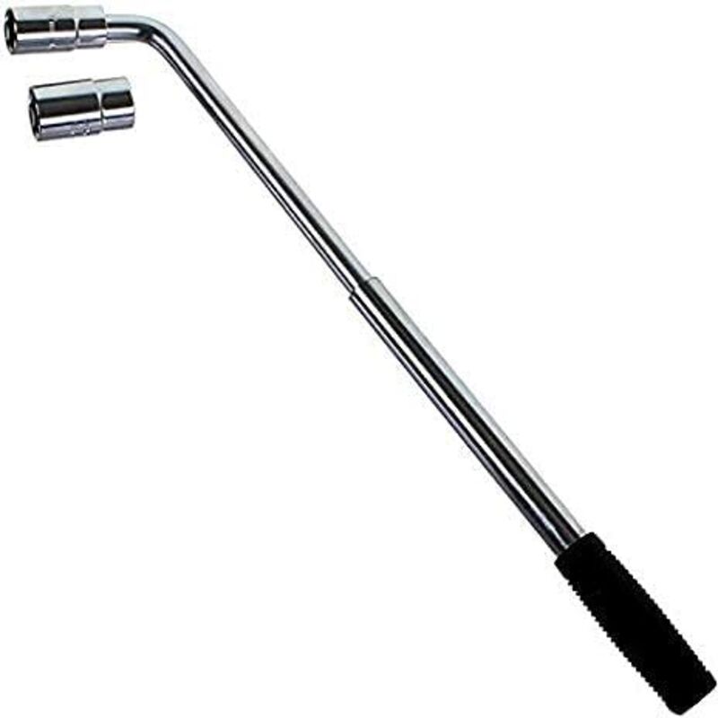 Chiave per pneumatici. allungabile realizzata in acciaio al carbonio cromato con impugnatura ergonomica in gomma antiscivolo . Perfetta per la rimozione e montaggio dadi ruota. Completa con due prese da 21 mm-23 mm & 17 mm-19 mm. Chiave allungabile Per pneumatici Con impugnatura ergonomica in gomma Completa con due prese da 21 mm-23 mm e 17 mm-19 mm In acciaio al carbonio cromato