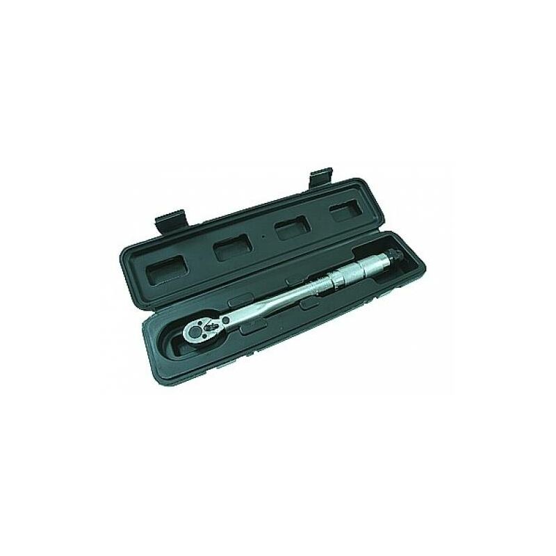 Chiave torsiometrica di precisione in cromo vanadio. Ideale per serrare dadi e bulloni a una coppia specifica. Il prodotto viene fornito in dotazione con un certificato di calibrazione. Con custodia di trasporto. Azionamento 19 - 119 Nm. Attacco 3/8".
