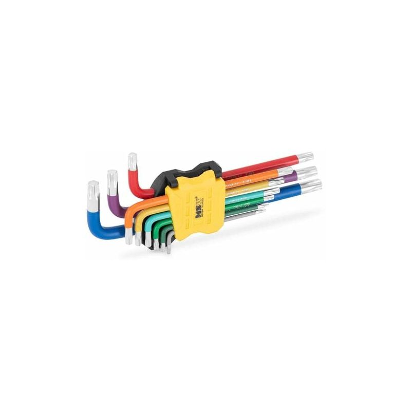 Chiave torx MSWCon il set di chiavi angolari ACC-LKT1 di MSW hai una presa salda su ogni vite esagonale Torx. La selezione di chiavi diverse offre la soluzione perfetta per le viti più comuni.Questo pratico set di chiavi angolari include ben nove chiavi esagonali, per permetterti di avere sempre la grandezza giusta a portata di mano e poter quindi applicare la coppia di serraggio ottimale alla vite utilizzata. Nei lavori più duri, il set in acciaio legato e temperato convince con la sua elevata stabilità. In questo modo avrai sempre lo strumento giusto per stringere o allentare la maggior parte delle viti Torx.Le chiavi angolari Torx nelle dimensioni da T10 a T50 convincono con una trasmissione ottimale della forza e con una coppia di serraggio elevata. Lavorare sarà una passeggiata, grazie all'ordinato supporto in plastica dotato di indicazioni di grandezza e