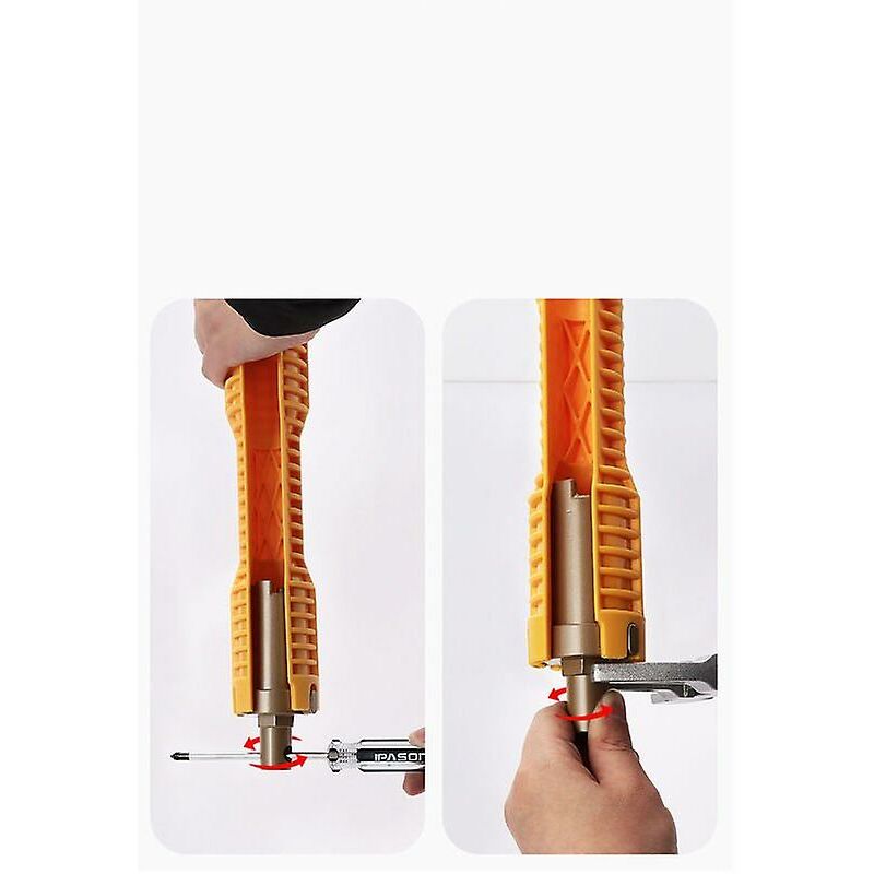 Descrizione La chiave per rubinetto e lavello è progettata per tubi dell'acqua e rubinetti, adatta per operazioni in spazi ristretti e facile da ruotare. Il design extra lungo da 250 mm consente di serrare dadi di montaggio difficili da raggiungere su rubinetti, spruzzatori e valvole a sfera. Lo stile a fessura aperta consente un facile accesso alle linee di alimentazione esistenti. Presenta una struttura in plastica leggera e ad alta resistenza e inserti in alluminio resistente. Adatto per dadi di alimentazione / valvole di intercettazione / cestelli del filtro / dadi della linea di alimentazione / dadi del rubinetto- L'attacco del cestello del filtro mantiene l'unità di scarico in posizione mentre si serra il dado del filtro. Strumento multifunzionale per installatore di rubinetti e lavelli 6 in 1 Descrizione del prodotto Strumento multifunzionale per installatori di rubinetti e lavelli 6 in 1 Caratteristiche: -Materiale: metallo, plastica -Colore giallo -Stile: 6 in 1 -Lunghezza