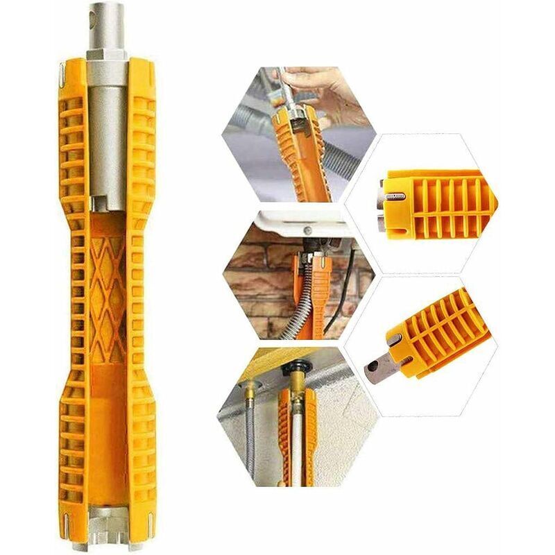 1. Adatto per dadi di alimentazione / valvole di intercettazione / cestelli del filtro / dado della linea di alimentazione / dadi del rubinetto - water / lavandino / bagno / impianto idraulico della cucina e altro 2. Basta scattare la posizione e ruotarla rapidamente, quindi sostituire il dado installato dal rubinetto. La chiave per rubinetto per le comuni installazioni di rubinetti e filtri per lavello con un inserto unico 3. Una varietà di dimensioni di dadi comuni. Ideale per i più comuni dadi a 2, 3, 4 e 6 linguette 4. Il design extra lungo consente di girare i dadi di montaggio difficili da raggiungere su rubinetti, spruzzatori e valvole a sfera 5.La chiave è realizzata in plastica leggera e lega di alluminio.alluminio resistente e ad alta resistenza. Plumbing Tools is a must-have gadget for your toolbox Questa chiave per rubinetto fissa e rimuove i dadi in plastica tubi e linee di alimentazione, oltre a dadi esagonali da 7/8 pollici e 1 pollice. Lo stile a fessura aperta