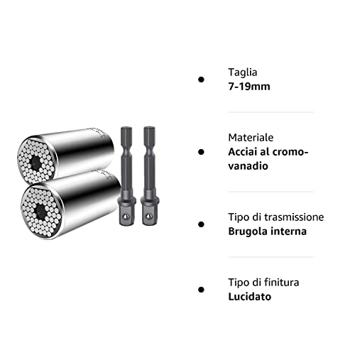 STRUMENTO UNIVERSALE⚒: la chiave (7 mm (1/4 ") e 19mm (3/4") possono essere utilizzati con trapani, avvitatori elettrici e pulsanti manuali che accettano Uso vite a testa esagonale può essere avvitato o quasi qualsiasi digitare pentagono, esagono, octonogal ... gancio (apertura e chiusura), noce, etc.