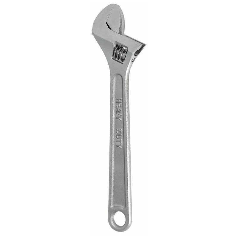 Chiave regolabile zigrinata da 12 - Lunghezza: 300 mm. - Con rotella zigrinata. - Impugnatura a doppia T che conferisce robustezza, resistenza ed ergonomia. - Ganascia sottile e lunga per un migliore accesso e fissaggio del dado. - Articolo noto anche come chiave inglese, chiave inglese, chiave regolabile.