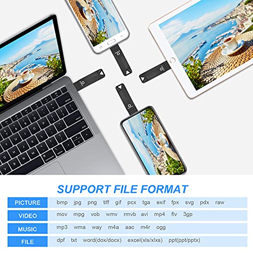 Chiavetta USB 128GB Memoria USB Compatibile Con Phone 4 in 1 USB Memory Stick Flash Drive Pen Drive Compatibile Con Dispositivi con iOS Android Micro USB Smartphone Tablet Tipo C Porta (128GB, Nero)