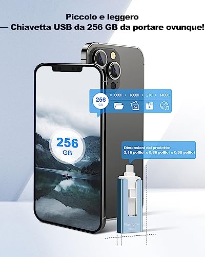 Chiavetta USB 256GB per Phone, 4-in-1 Pen Drive ad alta velocità per IOS, Android, PC, Penna USB per Dati, Immagini/Film, Chiave USB compatibile con Telefono, Smartphone, Computer, Laptop, Pad