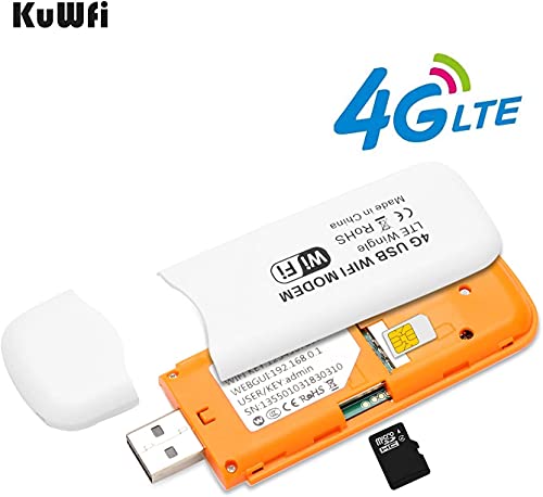 Chiavetta Internet, KuWFi 4G Car WiFi Modem LTE Dongle USB sbloccato Pocket Mobile Network Hotspot con scheda SIM Slot per esterni e interni, Bianco
