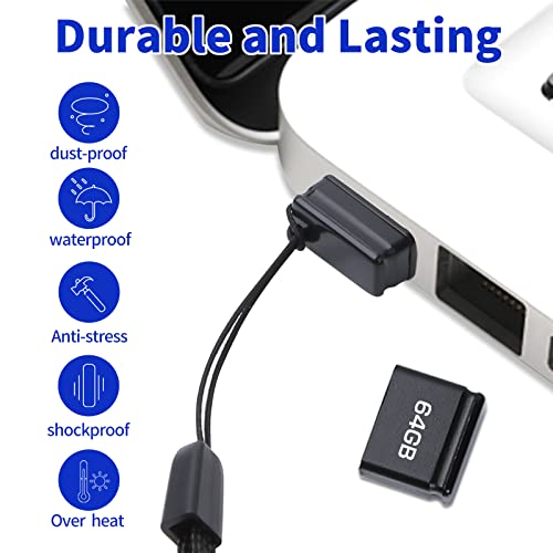 【Chiavetta USB 2.0 64 GB mini】: L'unità flash USB è di lunga durata e sicura. Questa chiavetta USB è realizzata con custodia in plastica. Non sporgerà dal tuo computer e non si piegherà o si romperà facilmente quando viene urtato come farebbero le unità più lunghe. Il cordino proteggerà i tuoi file dalla perdita ed è portatile per i tuoi viaggi.
