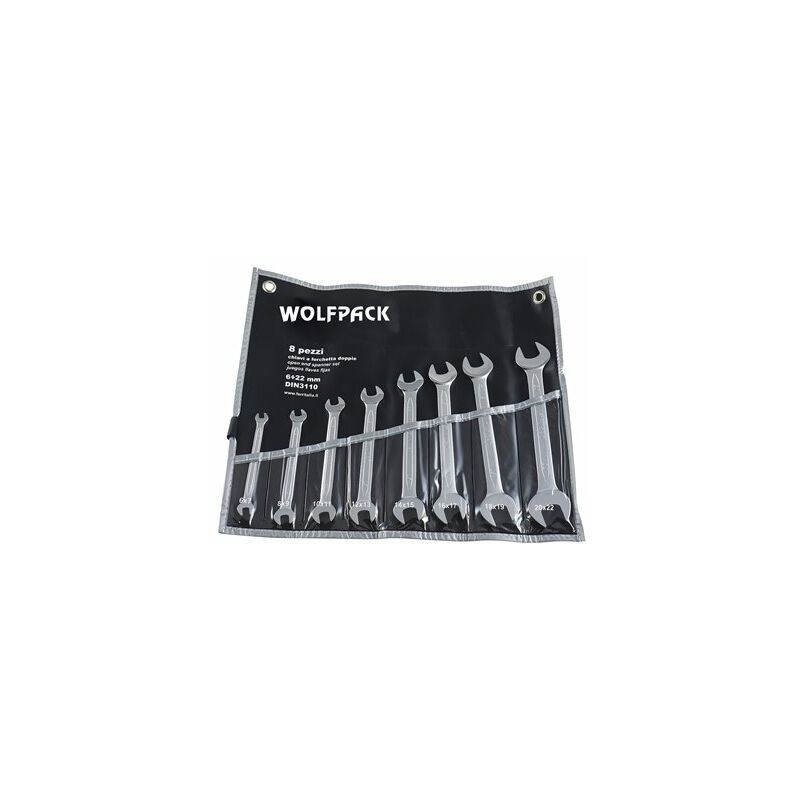 Set di 8 chiavi a forchetta Wolfpack Plus. - Misure: 6-22. - Realizzate in cromo-vanadio, per una maggiore resistenza e durata. - Ideali per lavori industriali.