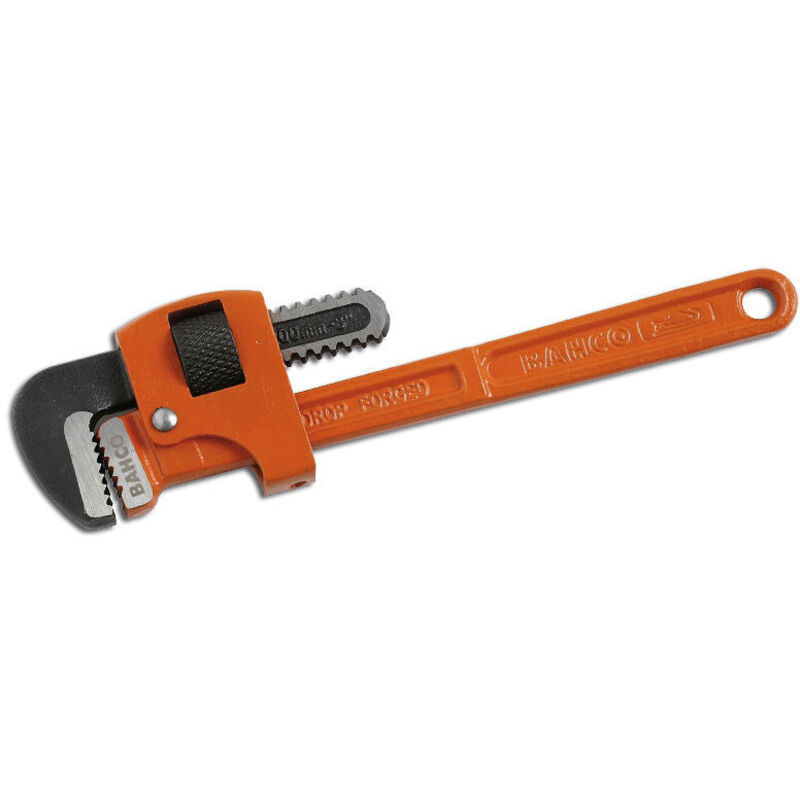 Chiave stillson dal design tradizionale per l'uso con una sola mano. Carica a molla con funzione di cricchetto. Corpo in acciaio forgiato, trattato anticorrosione. Ganasce temprate a induzione. Us standard ggg-w-651, tipo i