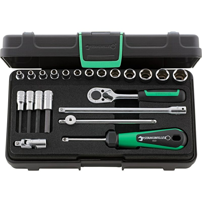 chiavi a bussola secondo DIN 3124. Quadri interni / esterni secondo DIN 3120. Uso: Per viti con esagono esterno / dadi con filettatura M2 − M8 e viti a esagono incassato con filettatura M4 − M8. Materiale: Acciaio al cromo, cromato. Fornitura: chiavi a bussola con bocca esagonale: 13 pz. n. art. 631000 Dim. 3,5;