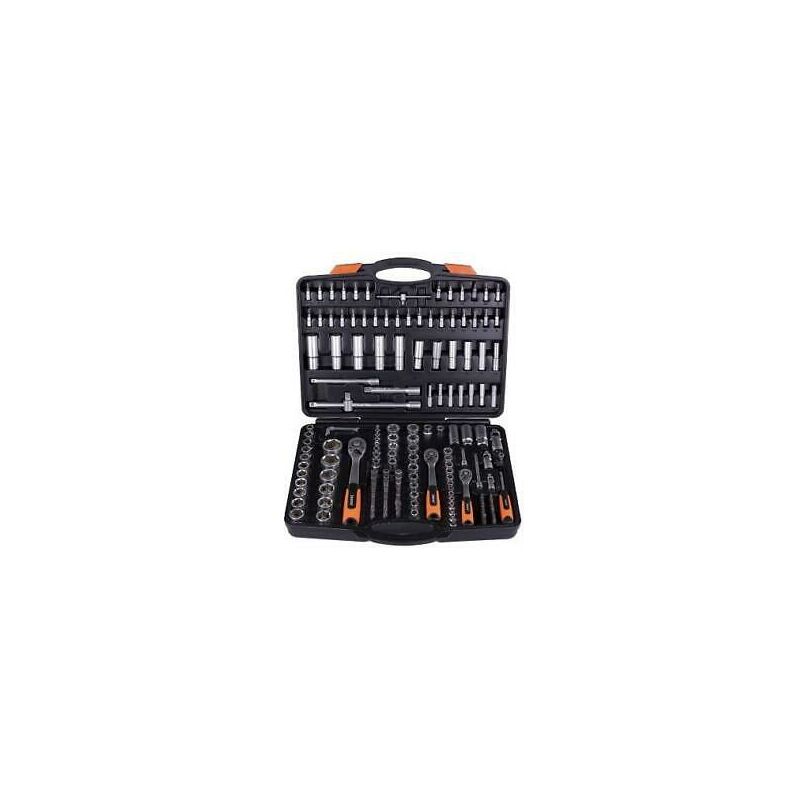 SET CHIAVI A BUSSOLA BRIXO 171 PEZZI UTENSILI MANUALI Set 171 pezzi in acciaio chrome vanadium, finitura satinata: Attacco 1/2 - Attacco 1/4 - Attacco 3/8: Bussole - Cricchetto - Prolunghe - RaccordI universali - Adattatore 3 vie - Chiavi per candela - Portainserti - Inserti - Impugnature girevoli - Maschi per bussole