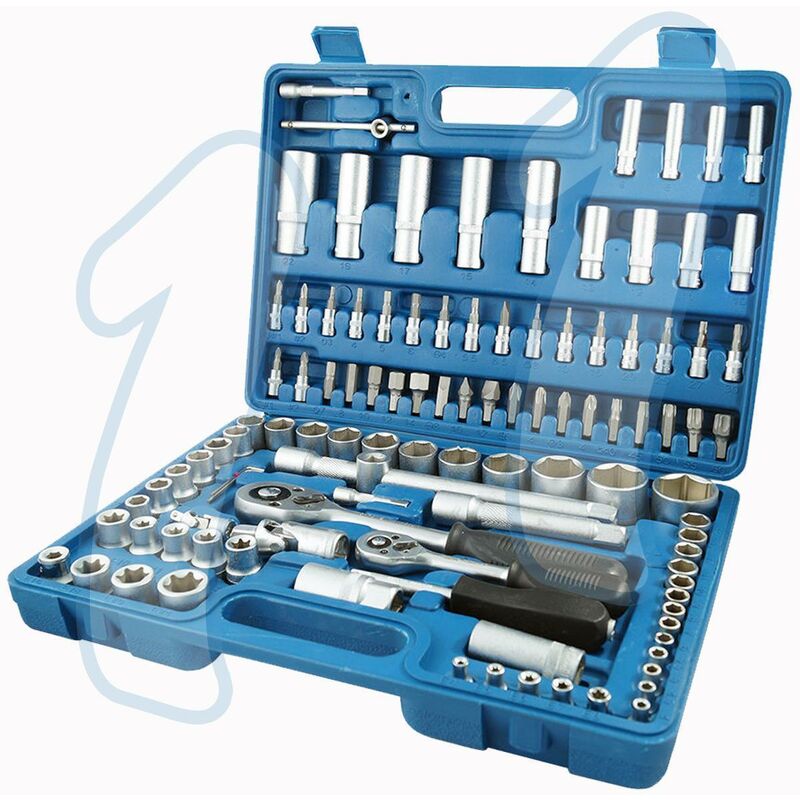 Set di chiavi a bussola con cricchetto 108 pezzi cromo vanadio. Il tutto riposto in comoda valigetta di plastica. Contenuto: - 13 bussole da 1/4 Best drive (mm): da 4 a 14 - 8 bussole lunghe da 1/4 lungh. (mm): 152 - 8 bussole 1/2 impronta torx: E10, E11, E12, E14, E16, E18, E20, E24 - 5 bussole 1/4 impronta torx: E4, E5, E6, E7, E8 - 2 prolunghe (mm): 50 - 100 - 1 snodo a cardano - 1 leva a T - 3 inserti a bussola da 1/4 per viti a taglio - 2 inserti per viti a croce POZIDRIV - 2 inserti per viti PHILLPS - 4 inserti per brugole (mm): da 3 a 6 - 7 inserti per viti TORX: da T8 a T30 - 18 bussole da 1/2 Best drive (mm): da 10 a 32 - 4 bussole lunghe (mm): da 14 a 19 - 2 bussole lunghe (mm): 16 - 21 - 1 cricchetto da 1/2 quadro femmina, a 5/16 esagono femmina - 1 snodo a cardano - 2 prolunghe (mm): 125 e 250 (leva a T) - 15 inserti con attacco da 5/16 (croce, taglio, torx e esagonali) - 1 adattatore con quadro maschio da 1/4, a esagono maschio da 1/4 - 3 chiavi esagonali (mm): 1,5 - 2