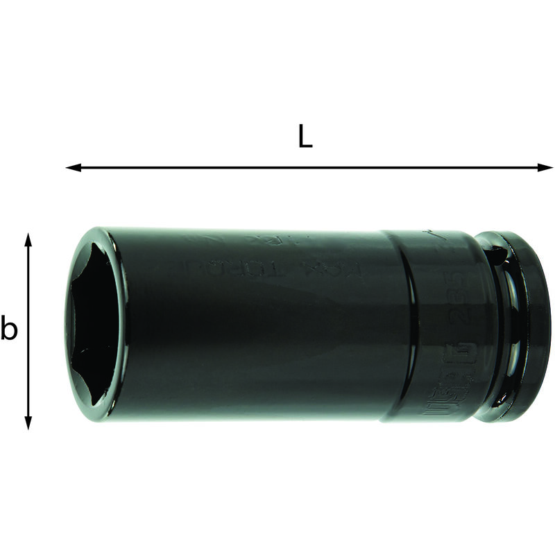 CHIAVI A BUSSOLA MACCHINA LUNGHE A PARETE SOTTILE CON BOCCA ESAGONALE Acciaio speciale altamente legato al Cromo Molibdeno Esecuzione fosfatata Utilizzare la spina di tenuta 235 MCA/9 (U02350208Q) per le misure da 27÷36 Utilizzare l'anello di sicurezza 235 MDA/9 (U02350228Q) per le misure da 27÷36 Codice Bocca esagonale mm b mm L mm Q.tà x conf. U02350280 27 40 100 1 U02350283 33 50 100 1 U02350284 36 53 100 1