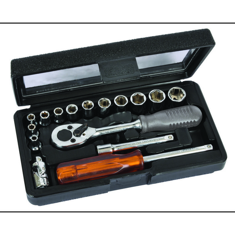 Dettagli tecnici Contenuto 1 KIT Funzione metrico Impronta (cacciavite) 1/4 (6.3 mm) Materiale Acciaio al cromo vanadio Tipo prodotto Kit di chiavi a bussola Set di bussole e inserti - 16 pezzi Cricchetto regolabile a destra e a sinistra, e. Contenuto del kit in cromo vanadio. Testo tradotto automaticamente. Punti di forza e dettagli Manico a cricchetto con impostazioni avanti e indietro per controllo aggiuntivo Componenti in cromo vanadio per robustezza extra Incluso nella consegna Cricchetto, prolunga 75 mm, giunto cardanico, impugnatura a vite per bussole 1/4, bussole 4 / 4,5 / 5 / 5,5 / 6 / 7 / 8 / 9 / 10 / 11 / 12 / 13 mm Requisiti di sistema null