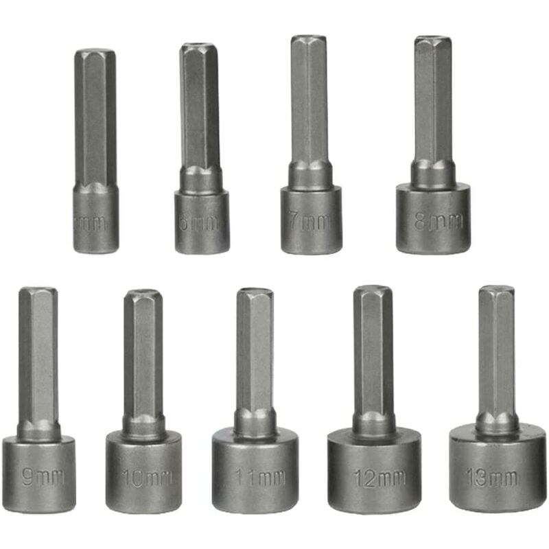 Sono sufficienti punte esagonali di diverse dimensioni per soddisfare le tue esigenze quotidiane. Le dimensioni del set di prese: Il diametro del set di prese è 5 mm, 6 mm, 7 mm, 8 mm, 10 mm, 11 mm, 12 mm, 13 mm. Materiale di alta qualità: Questo kit di chiavi a bussola è realizzato in acciaio ad alto tenore di carbonio ed è durevole. Facile da usare: Il kit di chiavi a bussola è facile da installare e smontare e non cadrà facilmente durante l'uso. Ogni kit di chiavi a bussola ha un segno di dimensione visibile e puoi trovare rapidamente la bussola di cui hai bisogno. Ampia applicazione: Il kit chiavi a bussola può essere utilizzato in scene fai-da-te domestiche, ricambi auto, manutenzione di macchinari professionali, ecc.