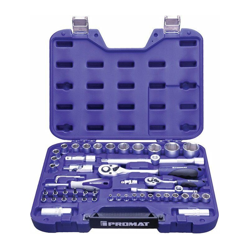 Azionamento quadrato da 6,3 mm (1/4) e 12,5 mm (1/2) · Inserti e comandi chiave plug-in in acciaio cromo-vanadio · cromato opaco · Lever switching knob with 2-component handle and nut locking function with push-button release Content: with 6.3 mm (1/4)- Square drive 1 lever switching knob (72 teeth) each 1 6-edge -Plug key insert SW 4 / 5 / 5.5 / 6 / 6.5 / 7 / 8 / 9 / 10 / 11 / 12 / 13 mm each 1 plug-in key insert for screws with inner TORX® profile size T 20 / 25 / 27 / 30 each 1 plug-in key insert for screws with hexagonal profile Gr. 3 / 4 / 5 / 6 mm each 1 extension 50 / 150 mm 1 cardan joint 1 handle with 6.3 mm (1/4) square per 1 plug-in key insert for slotted screws 4 / 5.5 mm per 1 plug-in key insert for screws with phillips slot (PH) Size 1 / 2 each 1 6kant pin key SW 1.25 / 1.5 / 2.0 / 2.5 / 3.0 mm 11 sliding piece (also to be used as adapter 10.0 mm (3/8') to 6.3 mm (1/4') with 12.5 mm (1/2)- square drive 1 lever switching knob (72 teeth) each 1 6-edge -key insert SW 10