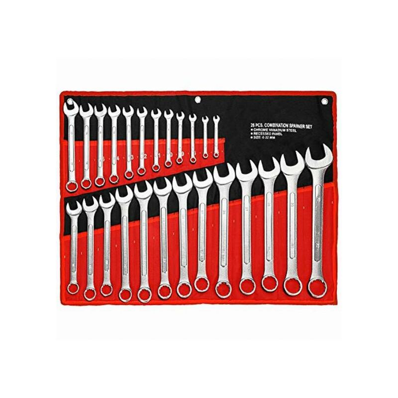 Con questo pratico set di 25 chiavi per dadi avrai sempre la chiave a bocca o ad anello più adatta a portata di mano. Questo set è composto da ben 25 chiavi per dadi diverse. Il set è fornito di una pratica custodia arrotolabile, così ogni chiave ha sempre il suo posto, la custodia arrotolabile inoltre è provvista di occhielli che consentono di fissarla, insieme agli attrezzi, comodamente alla parete. Il set comprende 25 chiavi per dadi in acciaio al carbonio delle seguenti misure: 6, 7, 8, 9, 10, 11, 12, 13, 14, 15, 16, 17, 18, 19, 20, 21, 22, 23, 24, 25, 26, 27, 28, 30, 32. SPECIFICHE PRODOTTO: Marca: Bakaji Peso: 6,2 kg circa Dimensioni: 63 x 50 cm circa Materiale: Acciaio al carbonio Colore: Rosso Nero Necessita di Montaggio: No Il set comprende chiavi per dadi delle seguenti misure: 6, 7, 8, 9, 10, 11, 12, 13, 14, 15, 16, 17, 18, 19, 20, 21, 22, 23, 24, 25, 26, 27, 28, 30, 32.