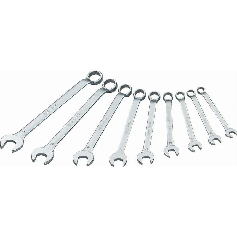 Dettagli: Testa lunga controcurva: il suo ampio gioco consente il passaggio di un ostacolo anche vicino al dado da maneggiare. Testa sottile: consente alla chiave di passare attraverso spazi ristretti. Corpo lungo: consente di applicare una coppia elevata. Punzonatura Superficie di azionamento fino a 36 mm di apertura. La superficie di contatto sui piani e non sugli angoli del dado consente un migliore serraggio. Peso: 650 g Caratteristiche: Contenitore: Scatola Numero di pezzi: 9