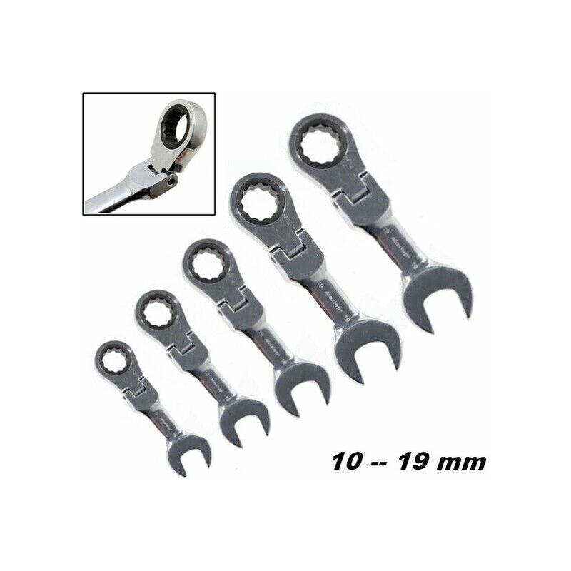 SET DI 5 CHIAVI COMBINATEA CRICCHETTO CORTE 10 - 19 mm. SET DI 5 CHIAVI COMBINATE FISSA E CRICCHETTO REVERSIBILE.TESTA A CRICCHETTO REVERSIBILE SNODATA, IDEALE PER RAGGIUNGERE I BULLONI ANCHE NEGLI SPAZI PIU' RIDOTTI.REALIZZATE IN ACCIAIO CHROME VANADIUMCON FINITURA SATINATA. MISURE: 10 -- 12 -- 13 -- 17 -- 19 mm LUNGHEZZA DA 95 A 135 mmIDEALI PER LAVORARE IN PICCOLI SPAZI