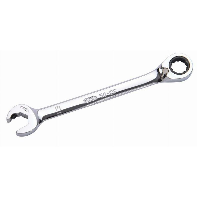 Clé mixte à cliquet intégré sur l'oeil et sur la fourche Pour les serrages et desserages dans les zones difficile d'accès. Système d'inversion par levier. Rapidité: Effet cliquet rapide, reprise immédiate de l'écrou. Maniabilité: Fourche à effet cliquet pour serrer / desserrer plus efficacement et plus rapidement.