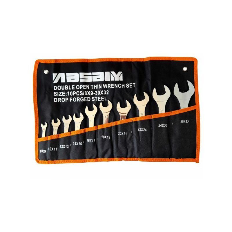 Descrizione prodotto Set 10 chiavi combinate a forchetta in acciaio da 8 a 32mm Art.20146 Set composto da 10 chiavi combinate a forchetta Misure 8 x 9, 10 x 11, 12 x 13, 14 x 15, 16 x 17, 18 x 19, 20 x 21, 22 x 24, 24 x 27, 30 x 32