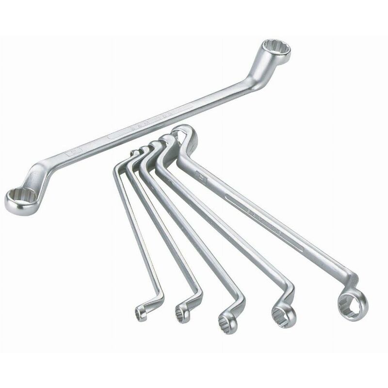 Dettagli: 2 aperture per chiave. Accesso ai dadi dall'alto. Angolo di 30°. Corpo lungo per un serraggio potente. Lo svasamento e l'inclinazione delle teste fini a 12 lati consentono un facile accesso ai dadi incassati. Uno smusso facilita il posizionamento della chiave. Finitura cromata lucida. Caratteristiche: Contenitore: Scatola Numero di pezzi: 6 Denominazione: 8X9 10X11 12X13 14X15 16X17 18X19 Peso (g): 1900