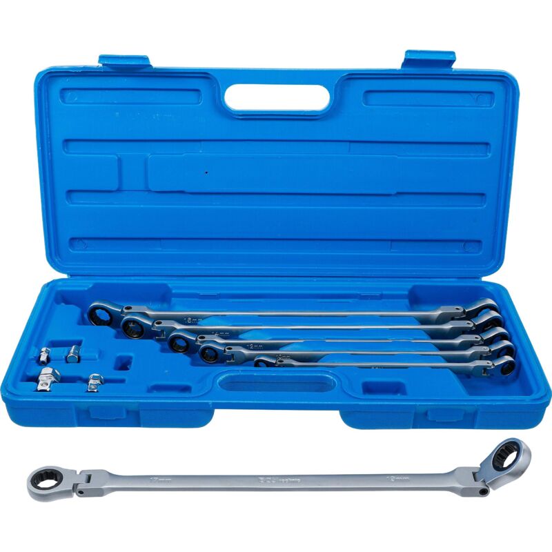 Fucinatura a freddo cromata opaca Extra lungo Le teste possono essere angolate in modo continuo Profilo: poligonale Oggetto della fornitura: Chiave snodata a cricchetto doppio, 8 x 9 mm, Lunghezza: 237 mm Chiave snodata a cricchetto doppio, 10 x 11 mm, Lunghezza: 294 mm Chiave snodata a cricchetto doppio, 12 x 13 mm, Lunghezza: 327 mm Chiave snodata a cricchetto doppio, 14 x 15 mm, Lunghezza: 370 mm Chiave snodata a cricchetto doppio, 16 x 18 mm, Lunghezza: 409 mm Chiave snodata a cricchetto doppio, 17 x 19 mm, Lunghezza: 412 mm 3 adattatori per alloggiare gli inserti per bussole: Quadro esterno 6,3 mm (1/4) Quadro esterno 10 mm (3/8) Quadro esterno 12,5 mm (1/2) Peso del tessuto 2.732 Dimensioni dell'imballaggio 1 Peso lordo 2732 g Materiale (F) Chrom-Vanadium-Stahl