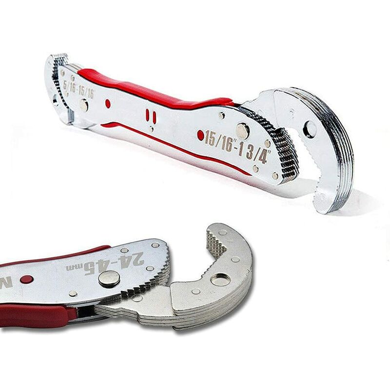 La chiave magica è uno strumento indispensabile per qualsiasi cassetta degli attrezzi. Non dovrai più cercare lo strumento giusto, non dovrai più perdere tempo. Con lo strumento sbagliato, puoi facilmente danneggiare il dado o bloccare i denti della chiave magica. Sono progettati per darle una razza simile a un pitbull a cui si aggrappa e non lascerà andare. L'artiglio magico ti consente di rimuovere i dadi completamente strappati che altri strumenti non possono rimuovere. Il design a doppia testa di questa chiave inglese offre un lavoro conveniente per tutti. 2 diverse specifiche: 9~24mm e 24~45mm possono soddisfare le esigenze di un uso più ampio. Può applicare la massima forza e coppia e allo stesso tempo proteggere la superficie dei dadi in situazioni di allentamento o fissaggio. Rispetto alla normale chiave inglese, l'apertura a mezzaluna di questa chiave magica può funzionare in spazi ristretti anche a 30 gradi. La chiave multifunzione super magica multifunzione è adatta per
