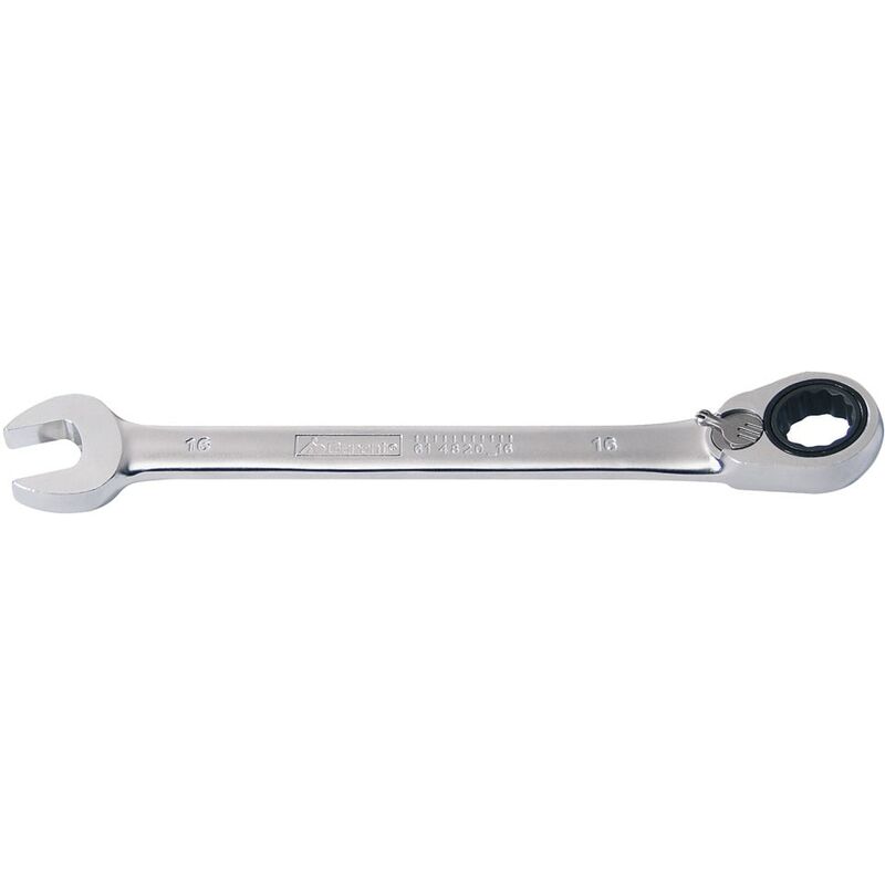 Forgiate. Lato anello con cricchetto facilmente reversibile. Anello di registro estremamente stretto: 5°. Materiale: Acciaio al cromo-vanadio, esecuzione cromata opaca. Dati tecnici Superficie es. opaca cromata Materiale Acciaio al cromo-vanadio Posizione anello Grad 15 Processo di produzione forgiato Angolo di registro Grad 5 Numero di denti 72 Tipo di prodotto Chiave Apertura, mm 15 Lunghezza chiave L, mm 200 Dimensione apertura Metrica Apertura bocca b, mm 33,4 Altezza bocca h1, mm 6,9 Altezza anello h2, mm 10 Carico di coppia del cricchetto, N·m 200 ⌀ Anello D, mm 28,9