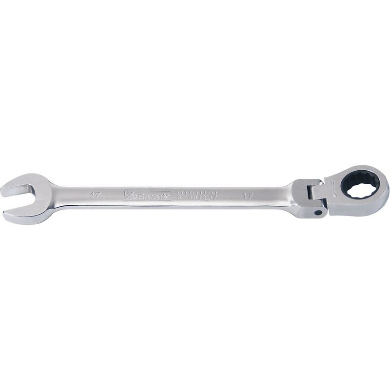 Forgiate. Lato anello con cricchetto facilmente reversibile. Anello di registro estremamente stretto: 5°. Materiale: Acciaio al cromo-vanadio, esecuzione cromata opaca. Dati tecnici Processo di produzione forgiato Materiale Acciaio al cromo-vanadio Superficie es. opaca cromata Angolo di registro Grad 5 Numero di denti 72 Tipo di prodotto Chiave Apertura, mm 12 Lunghezza chiave L, mm 174 Dimensione apertura Metrica Apertura bocca b, mm 25,9 Altezza bocca h1, mm 5,8 Altezza anello h2, mm 8,7 Carico di coppia del cricchetto, N·m 90 ⌀ Anello D, mm 23,7