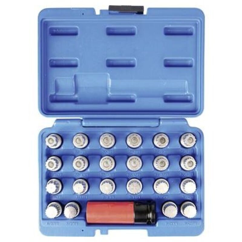 Dettagli tecnici Contenuto 1 pz. Dimensione del prodotto, larghezza 120 mm Dimensione del prodotto, lunghezza 210 mm Dimensioni (L x L x A) 210 x 120 x 48 mm Dimensioni prodotto Altezza 48 mm Peso 1000 g Set di chiavi per lucchetto per cerchione VAG Kunzer Kit adattatore speciale per allentare e serrare senza rompere lucchetti per cerchioni specifici per vetture, quando le chiavi di serie non sono più disponibili. Punti di forza e dettagli 23 pezzi, in valigetta Caratteristiche Adatto a: Polo, Maggiolino, Golf, Jetta, Scirocco, Passat, Sharan, Touran, Tiguan (fino all'anno di costruzione 2010) Incluso nella consegna 22 adattatori con profili codificati 1 chiave a bussola elettrica 1/2 17 mm Requisiti di sistema null