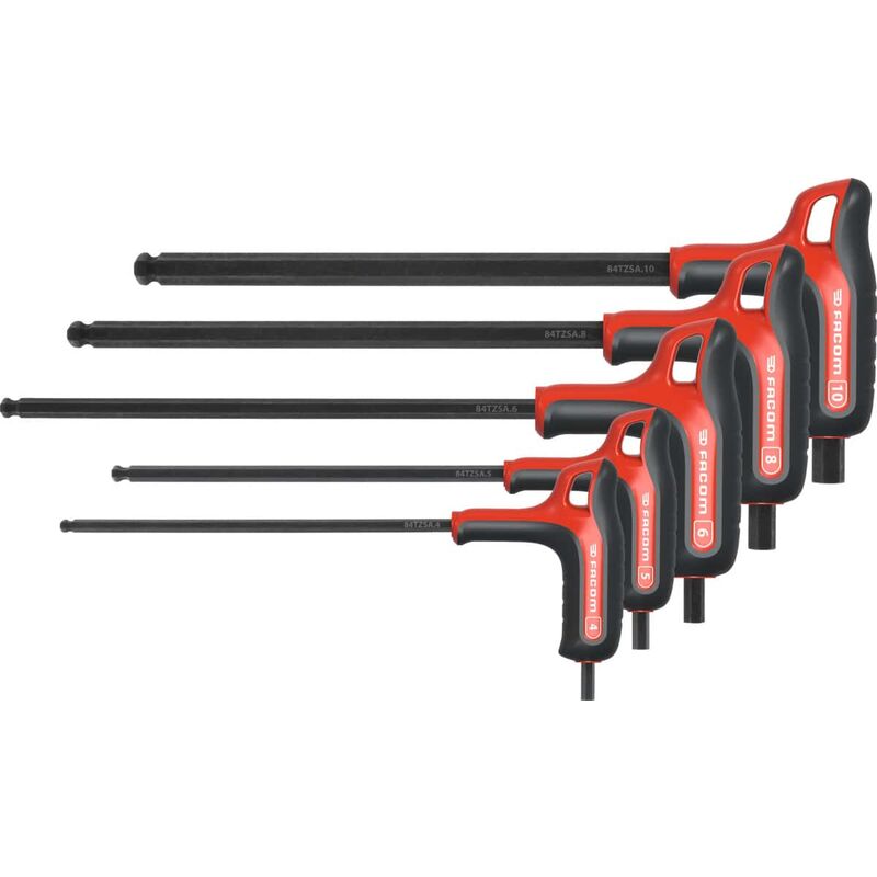 Impugnatura a T in multicomponente di forma ergonomica. Lama in acciaio al silicio fosfatato, con testa sferoidale. Impugnatura a T con uscita laterale. Fornitura: cad. 1 giravite n. art. 627421: Dim. 4;