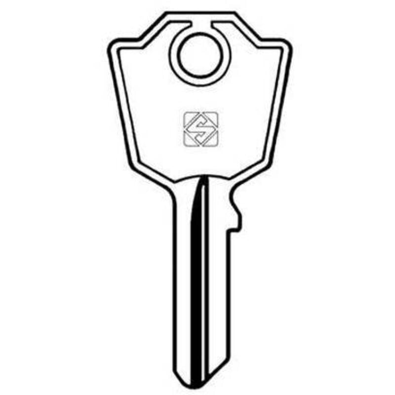 Chiavi Silca per serrature a cilindri ottone In ottone nichelato, con testa sagomata come i modelli originali, nella sigla del modello la lettera R e l'ultimo numero dispari dell'articolo indicano il profilo sinistro, la sequenza di esposizione per ordine alfabetico di modello MER4 Mod Meroni 5 spine piccole