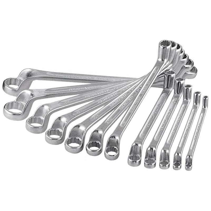 Forgiate. Con aperture a tolleranze strette. Corpo profilato a doppia T, antiscivolo. Resistenza ottimale alla flessione, buona trasmissione della forza. Lato anello con profilo AS-Drive. Norma: DIN 838 / ISO 3318 Materiale: Acciaio al cromo-vanadio, cromato. Fornitura: Cad. 1 chiave poligonale doppia n. art. 615600 / 615000 / 615900 / 615950: 6×7;