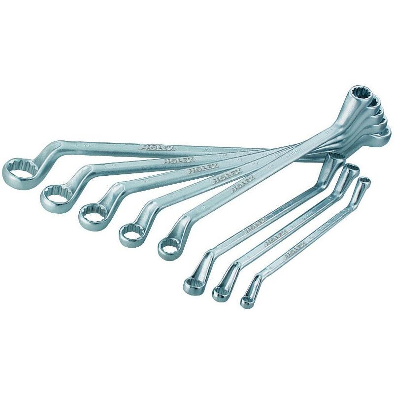Forgiate. Con aperture a tolleranze strette. HOLEX − con corpo ovale. Norma: DIN 838 / ISO 3318 Materiale: HOLEX − Acciaio al cromo-vanadio, esecuzione cromata. Fornitura: Cad. 1 chiave poligonale doppia n. art. 615600 / 615000 / 615900 / 615950: 6×7;