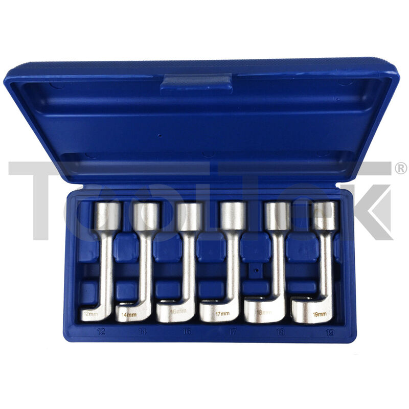 Set 6 chiavi per raccordi tubi iniettori.Attrezzi professionaliIdeali per officine meccaniche MISURE: 12-14-16-17-18-19 Per montaggio e smontaggio dei raccordi tubi iniettoriBocche poligonaliLunghezza: 98 mm Quadro di manovra da 1/2 Acciaio speciale altamente legatoEsecuzione cromataFornite in cassetta di plastica