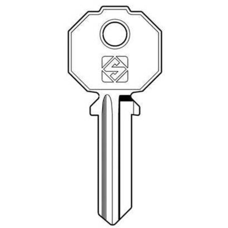 Chiavi Silca per serrature a cilindri ottone In ottone nichelato, con testa sagomata come i modelli originali, nella sigla del modello la lettera R e l'ultimo numero dispari dell'articolo indicano il profilo sinistro, la sequenza di esposizione per ordine alfabetico di modello PF092 Mod Prefer 5 spine normali