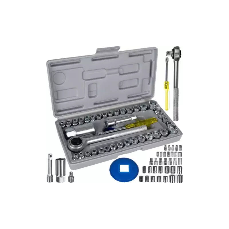 Il set di chiavi a bussola è stato sviluppato per i lavori più impegnativi. Materiali accuratamente selezionati, elevata precisione di produzione e resistenza alla deformazione e alla rottura determinano l'affidabilità di ciascun elemento, che è realizzato in acciaio al cromo vanadio di alta qualità, conferendogli un'elevata resistenza e che vi servirà per molti anni. L'acciaio al cromo vanadio è resistente alla corrosione, alla deformazione e alla rottura. IN UNA SCATOLA SICURA - Il set non contiene solo una chiave a cricchetto, cappucci e accessori, ma tutto è confezionato in una pratica custodia sicura con aree rialzate per ogni articolo. Ciò significa che lo strumento è fissato saldamente quando non viene utilizzato. UTILIZZO PRATICO: Prolunga, cacciavite e cricchetto sono dotati di una sfera che impedisce la caduta del cappuccio;
