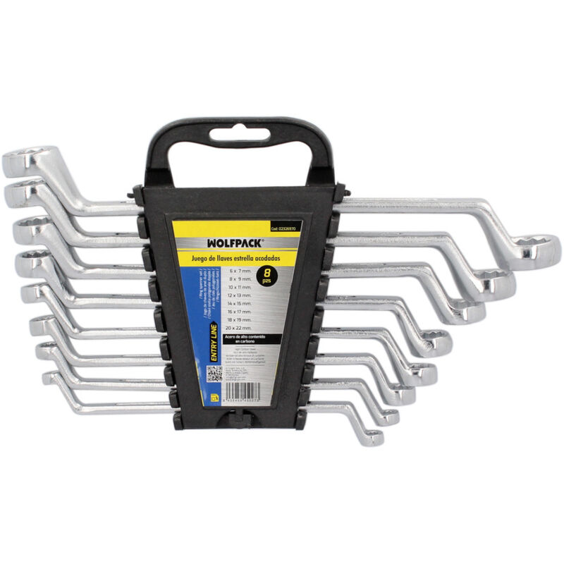 Set di chiavi a L Wolfpack - In acciaio ad alto contenuto di carbonio. - Misure: 6x7/8x9/10 x 11/12 x 13/14 x 15/16 x 17/18 x 19/20 x 22 mm. - Doppia testa ad anello smussato per una regolazione ottimale delle viti. - Consente di lavorare in spazi ristretti o con viti di fissaggio profonde. - Ideale per lavori industriali, idraulici, officine meccaniche, bricolage, riparazioni domestiche, ecc. - Articolo noto come chiave a stella, chiave a stella, chiave combinata, chiave fissa, chiave a doppia stella, chiave a stella dentata, chiave a doppia profondità, ecc.