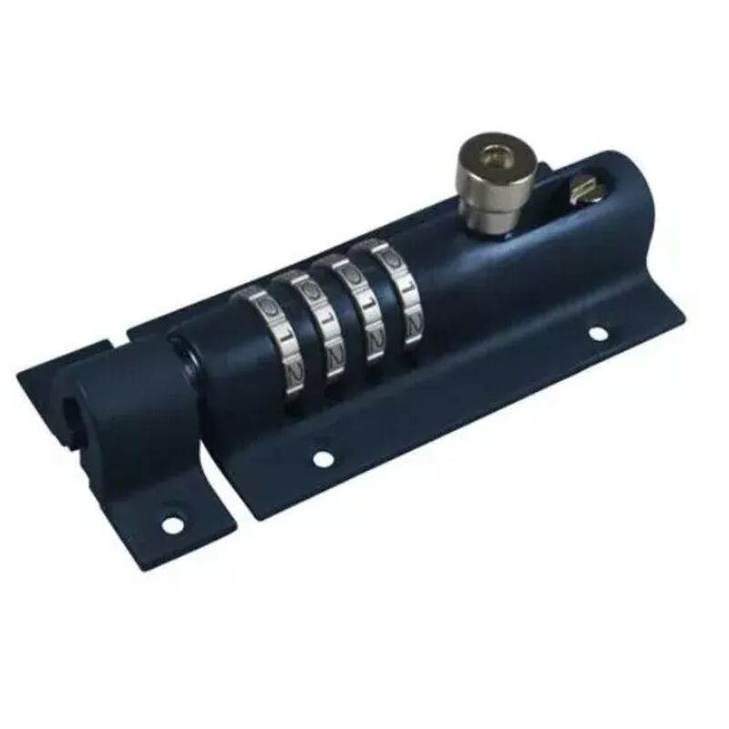 Chiavistello, catenaccio di bloccaggio ricodificabile con combinatore da 4 numeri. Combinazione possibili 10000. Materiale ferro verniciato. Colore blu. Misure: larghezza 120 mm. altezza 50 mm. apessore 40 mm. Peso kg 0,39. Prezzo in promozione.